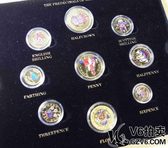 名稱: Lot176-49 英國喬治六世彩色鍍金紀(jì)念幣一套9枚