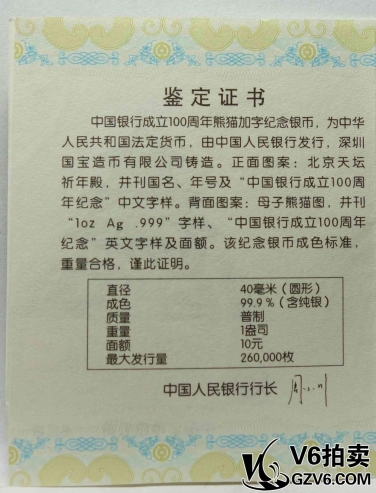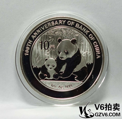 名稱: Lot176-58 中國銀行成立100周年熊貓加字紀(jì)念銀幣 帶盒證