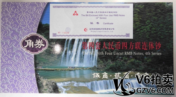 名稱: Lot176-95 第四套人民幣伍角/貳角/壹角四方連鈔 帶冊證