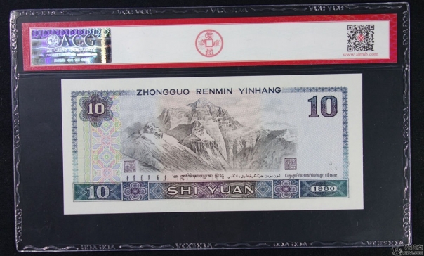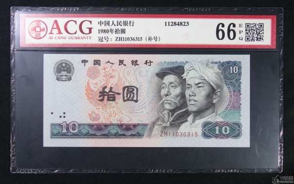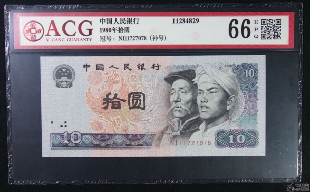 名稱: Lot82-90: ACG-66EPQ-1980年人民幣拾圓 補(bǔ)號*2 冠號:NI11727078/ZH11036315