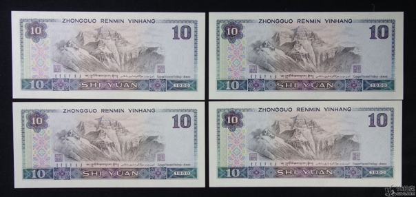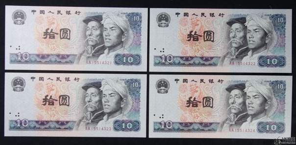 名稱: Lot82-97: 1980年人民幣拾圓 火鳳凰(AA雙冠,順子尾,標十)冠號:AA15514321-30 燈下微斑 中間有微折 9.5品