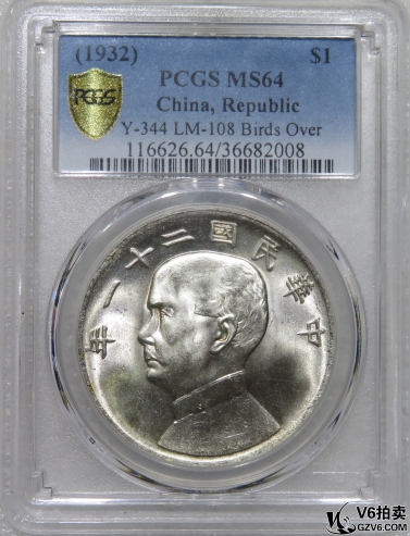 名稱: Lot95-74: PCGS-MS64 民國二十一年帆船壹圓 三鳥