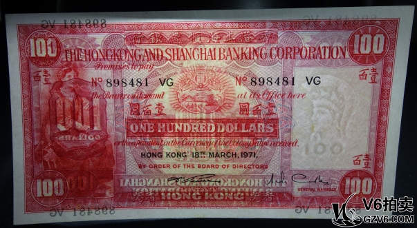 名稱: Lot95-111: 1971年香港匯豐銀行壹佰圓 898481 有折 有下水 9品