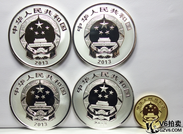 名稱: Lot95-165: 2013年黃山金銀套幣(1/4盎司金幣+4*1盎司銀幣)帶盒證