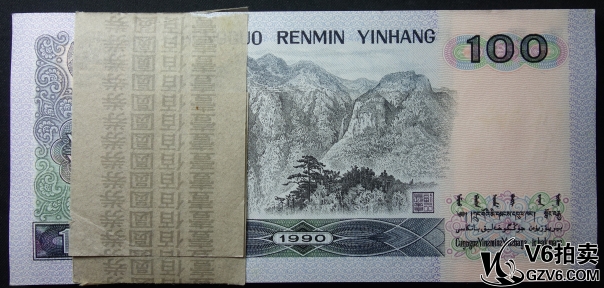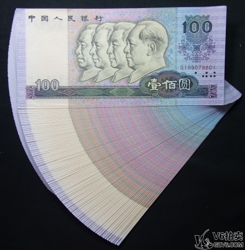名稱: Lot95-225: 1990年壹佰圓一刀 SI89078801-9000 含8888豹子號 中國夢 燈下有斑 9.5品