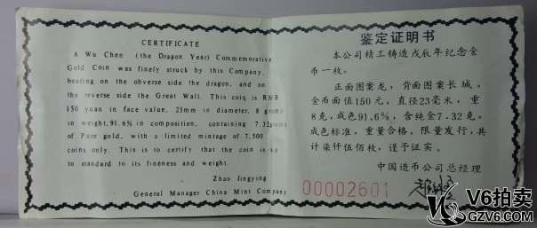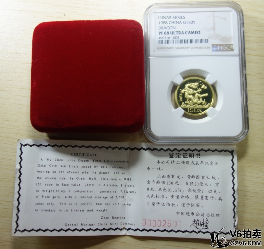 名稱: Lot95-232: NGC-PF68-1988年戊辰生肖龍金幣(總重8g,含純金7.32g) 帶盒證