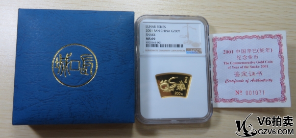 名稱: Lot95-236: NGC-MS69-2001年辛生肖蛇1/2盎司扇金幣 帶盒證