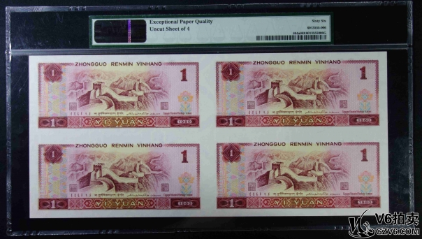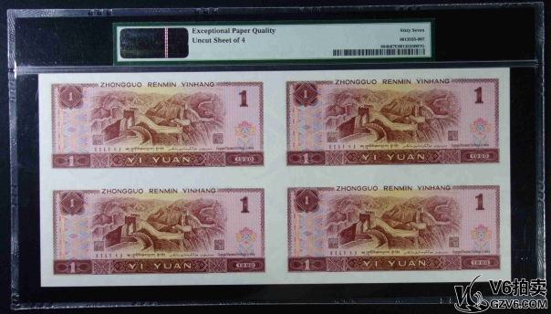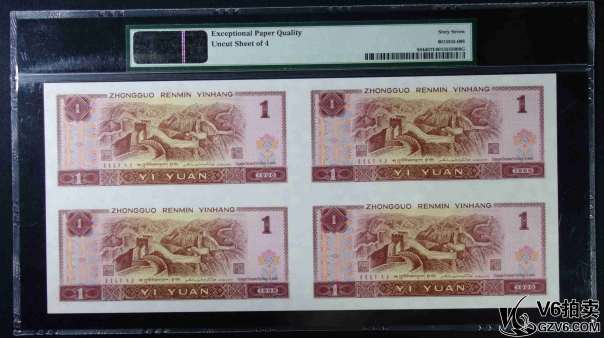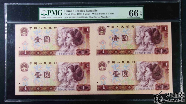 名稱: Lot95-239: PMG-66EPQ/67EPQ*2-四版人民幣壹圓四方連體鈔一套 EE0092/3/4/57990 帶冊(cè)證