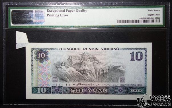 名稱(chēng): Lot98-8: PMG-67EPQ-1980年拾圓 ZD97964819 大折白 福耳
