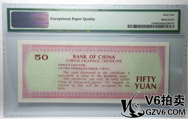 名稱: Lot176-93 PMG-64EPQ 中國銀行外匯兌換券伍拾圓 ZI047680
