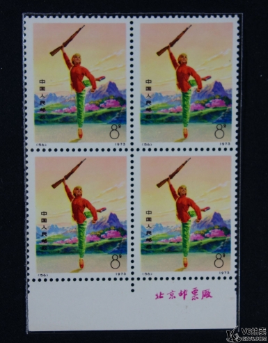 名稱: Lot82-52: 編號53-54-55-56 白毛女 四方聯(lián) 帶廠銘 共16枚(55有黃,其余微黃 上品)