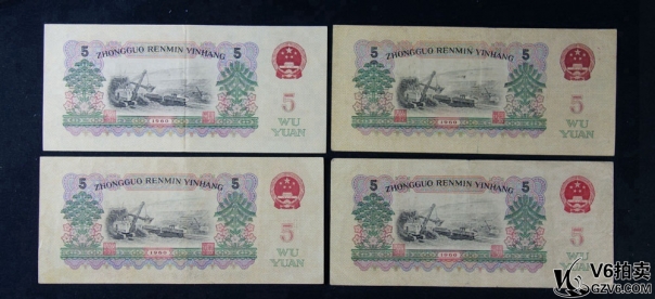 名稱(chēng): Lot82-71: 三版人民幣煉鋼伍圓 共4張 有黃折 燈下微斑 8品