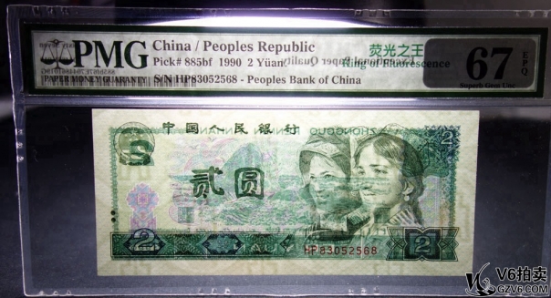 名稱: Lot82-76: PMG-67EPQ-1990年人民幣貳圓 熒光之王 冠號:HP83052568