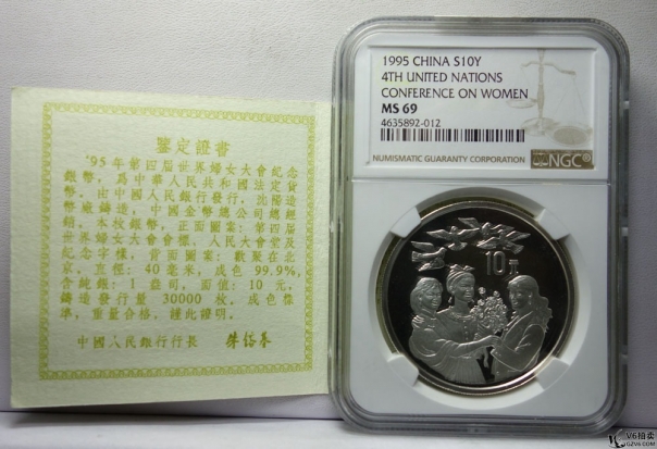 名稱: Lot82-100: NGC-MS69-1995年聯(lián)合國(guó)婦女大會(huì)紀(jì)念1盎司銀幣 帶證書(shū)