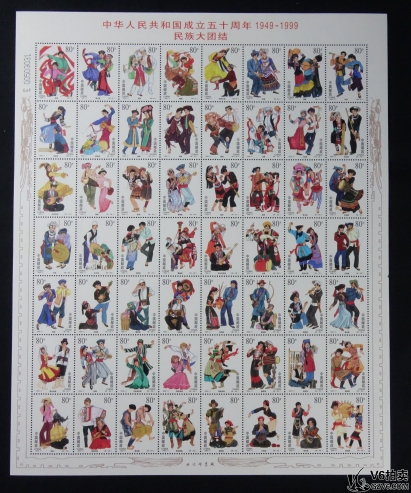 名稱: Lot82-226: 民族大團結(jié)大版票(含大團結(jié)1版+紀念張1版) 微黃 上品