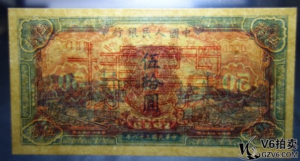 名稱: Lot95-90: PCGS-63-1949年伍拾圓 藍(lán)火車 票樣 0016735