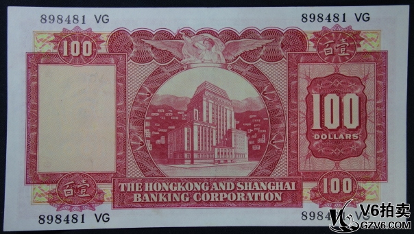 名稱: Lot95-111: 1971年香港匯豐銀行壹佰圓 898481 有折 有下水 9品