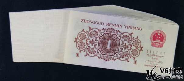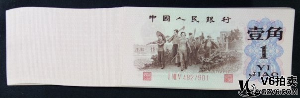 名稱: Lot95-135: 三版人民幣壹角 紅三羅凸版 一刀百連 冠號:4827901-8000 全品
