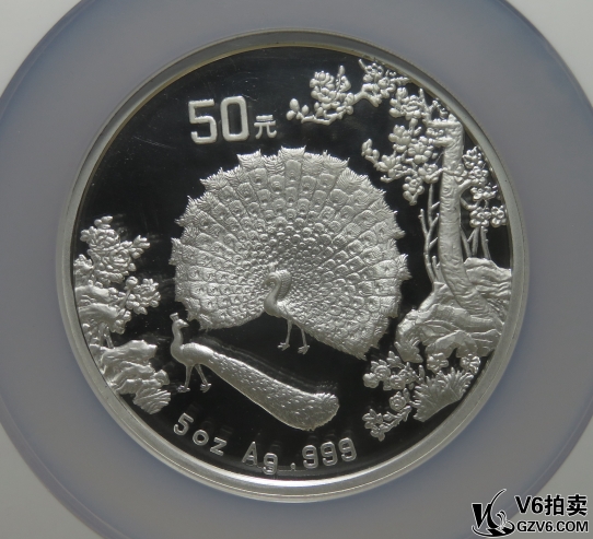 名稱: Lot95-155: NGC-PF69-1993年孔雀(郎世寧名畫)5盎司銀幣 無盒證