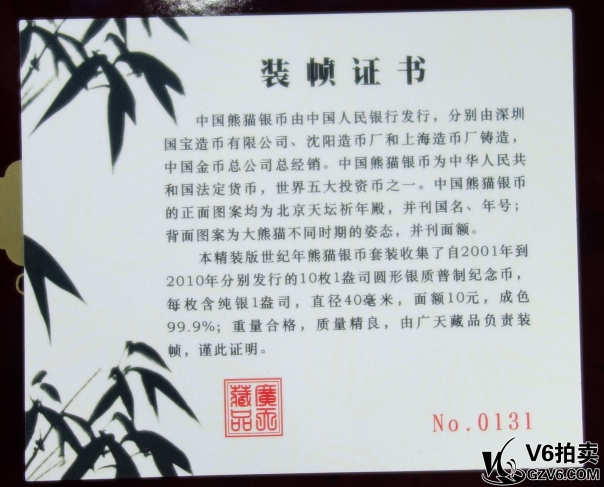 名稱: Lot95-162: 2001-2010年熊貓普制1盎司紀(jì)念銀幣 共10枚 帶盒 帶裝幀證書(shū)