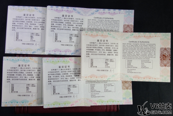 名稱: Lot95-165: 2013年黃山金銀套幣(1/4盎司金幣+4*1盎司銀幣)帶盒證