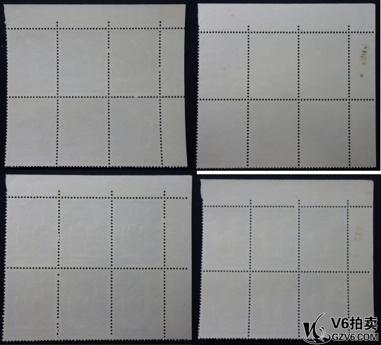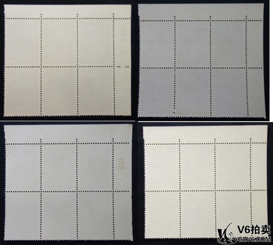 名稱: Lot95-171: 特46唐三彩 6方聯(lián)一套 帶角邊廠銘 微黃 邊齒微折 上品