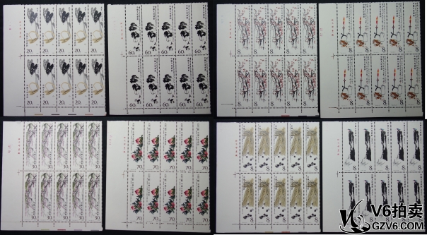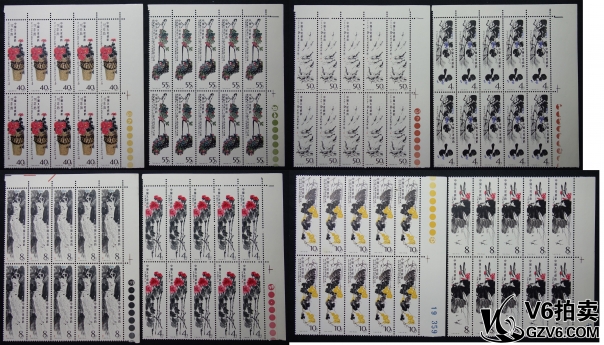 名稱: Lot95-173: T44齊白石 十方聯(lián)一套 6張帶角邊色標,8張帶角邊廠銘,2張帶邊帶 16-11/16-15齒有折 其余部分微黃 上品-全品