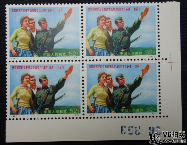 名稱: Lot95-176: N阿爾巴尼亞 4方聯(lián)一套 帶角邊 一張微折 上品