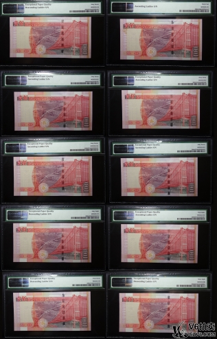 名稱: Lot98-9: PCGS-64/67EPQ*6/68EPQ*3-2005年香港壹佰圓(左順右順 十全大順012345-987654)共一套10張